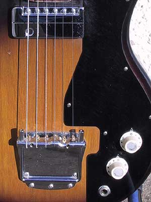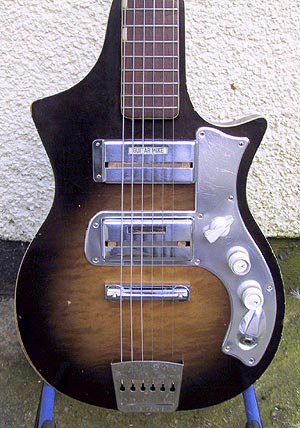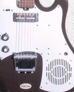 This one (a Teisco made Silvertone TRG-1 serial # 381.14870) came from Laurel, Montana in the USA and was bought from the very helpful Kit at Vintage Guitars Xtreme.